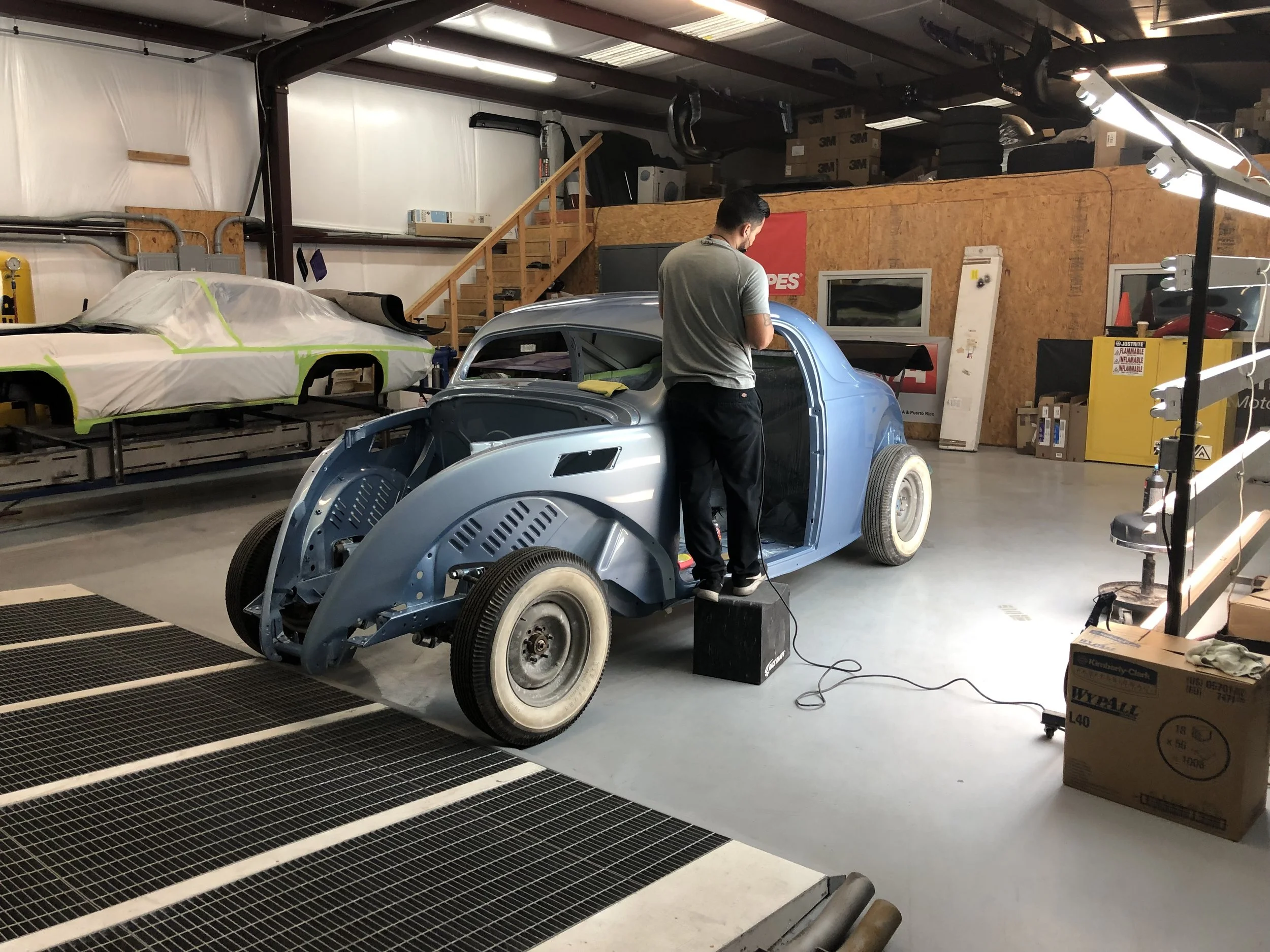 It was cold and grey day in Everman, Texas, when Rich Buckley and I made our way to catch up with KC, and only the long, thick tread marks in the parking lot from past burnouts hinted to the horsepower hidden behind the bay doors of KC’s Paint Shop. Inside the shop was bright, clean and busy, with guys working every stage of a hot rod build in parallel projects and timelines. There was metal fab work being welded, chassis and suspension work coming together, wiring harnesses being installed, and final buffing of the Austin Speed Shop Zephyr all taking place that day. No TV producers, no sound crew, only one in-house camera person, no artificial deadlines and no Richard Rawlings—so how or why did one of the most popular, talented and earliest members of the Gas Monkey team, and the Fast N’ Loud show, end-up in the same business just ninety minutes from Dallas but for all intents and purposes, worlds apart?